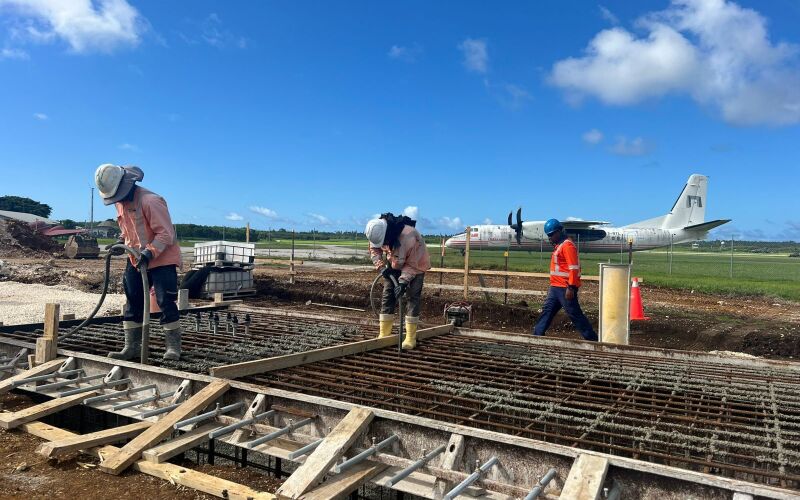 • a new 120 mm thick reinforced concrete slab on 450mm of crushed coral aggregate, including edge beams and mowing strips for the refuelling services;