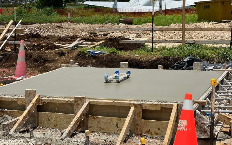 • a new 200mm thick reinforced concrete slab on 450mm of crushed coral aggregate,14 footings and edge beams for an Air Wing hangar;